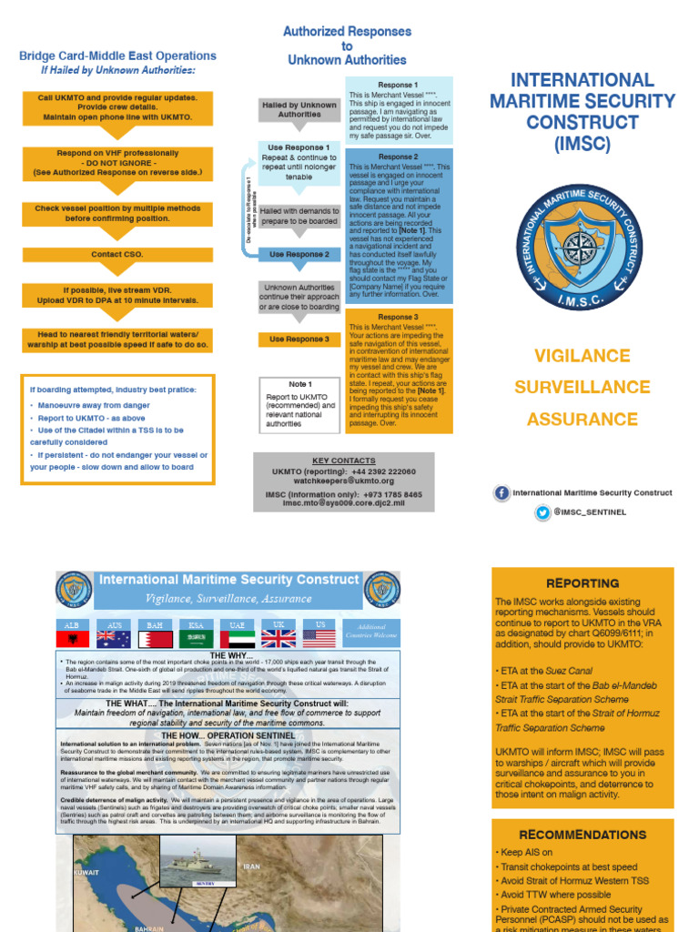 Security Construct to demonstrate their commitment to the international rules-based system. IMSC is complementary to other UKMTO will inform IMSC; IMSC will pass