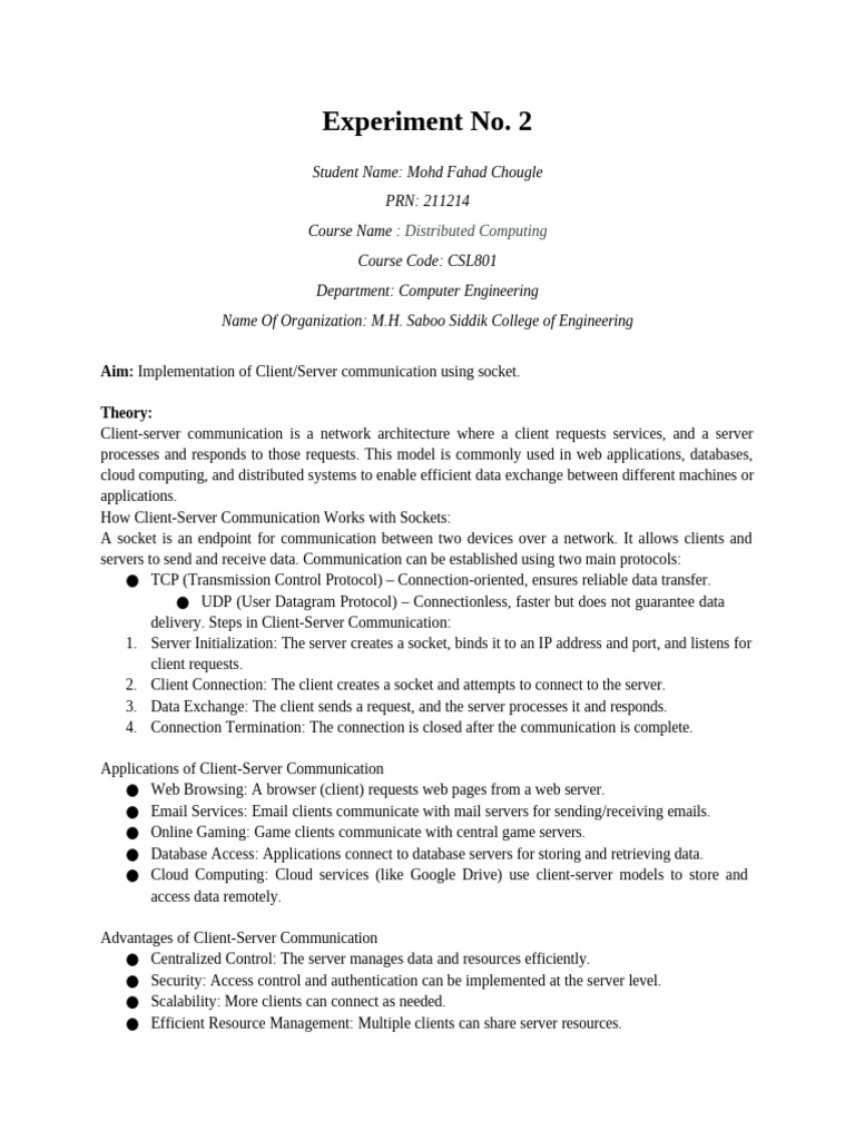 Hence, we have successfully implemented client-server communication using sockets, enabling efficient