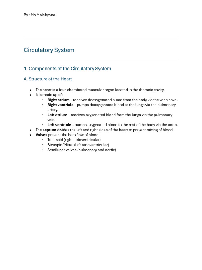 o Right ventricle – pumps deoxygenated blood to the lungs via the pulmonary