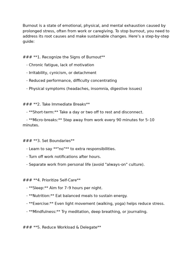 prolonged stress, often from work or caregiving. To stop burnout, you need to