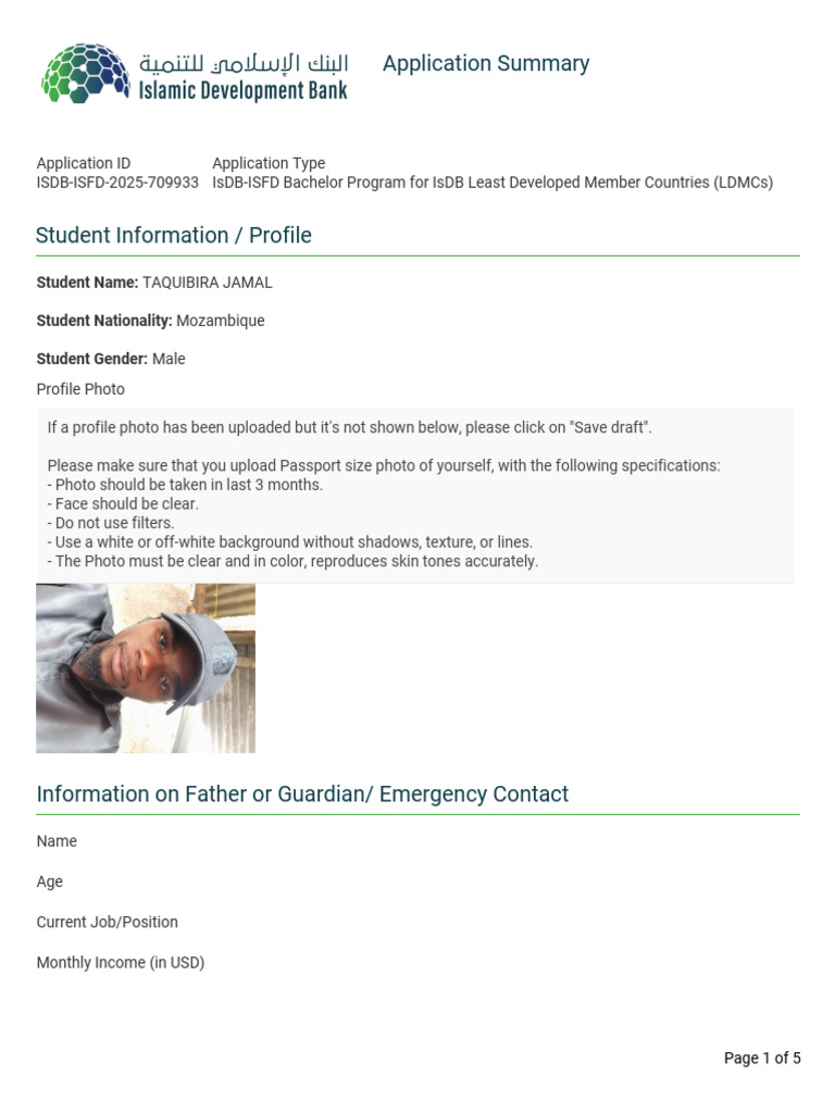 ISDB-ISFD-2025-709933 IsDB-ISFD Bachelor Program for IsDB Least Developed Member Countries (LDMCs)
