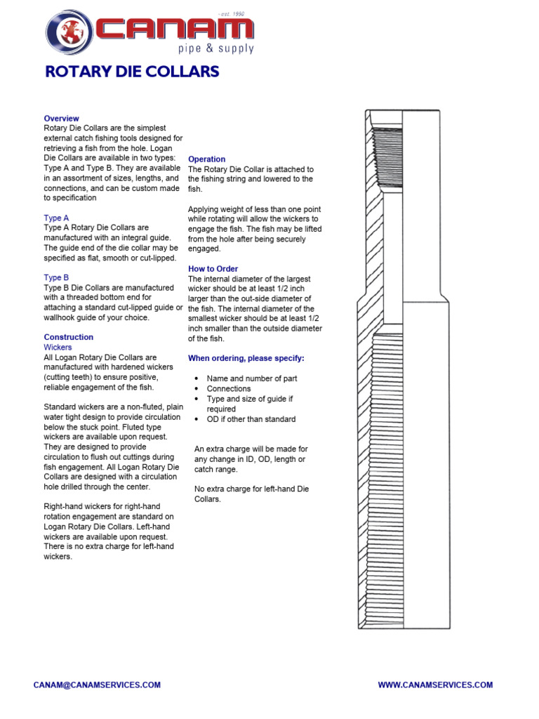 Type A Rotary Die Collars are engage the fish. The fish may be lifted