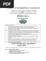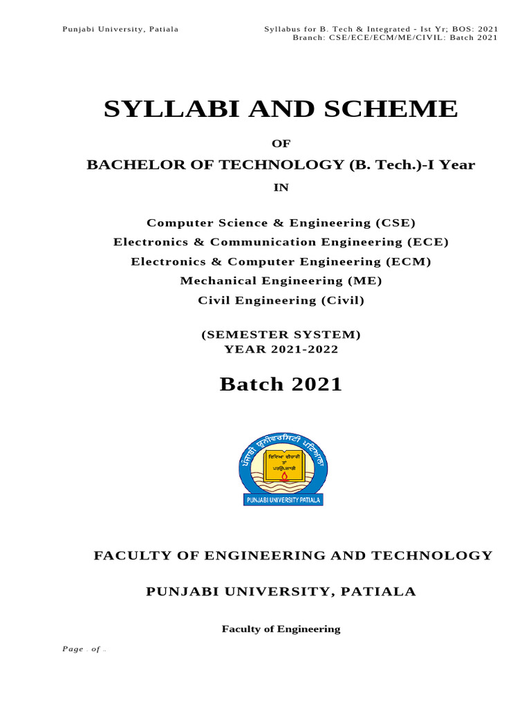 Punjabi University, Patiala Syllabus for B. Tech & Integrated - Ist Yr; BOS: 20 21