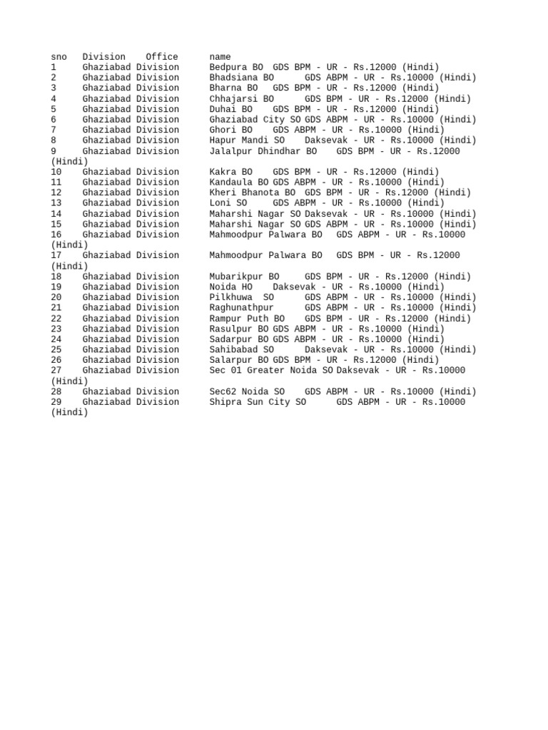 1 Ghaziabad Division Bedpura BO GDS BPM - UR - Rs.12000 (Hindi)
