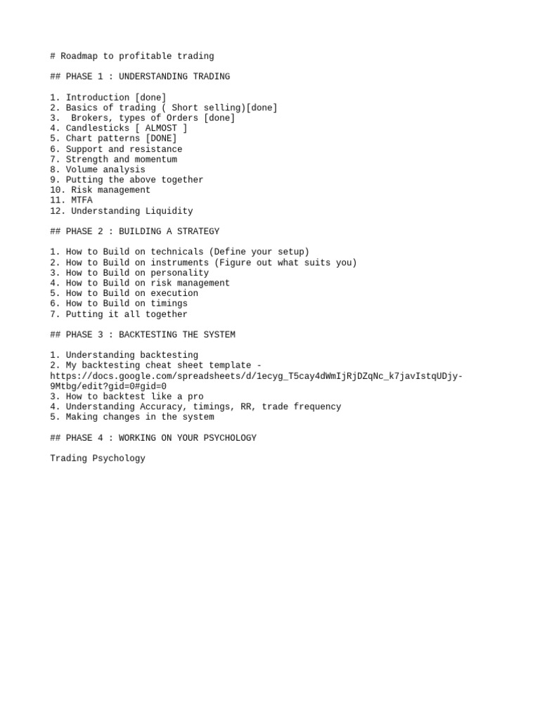 # Roadmap to profitable trading