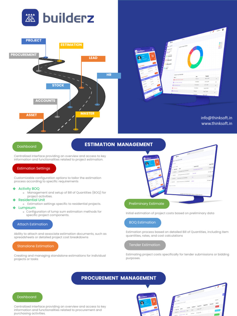 Management and setup of Bill of Quantities (BOQ) for project Storing and accessing project-related documents and files.