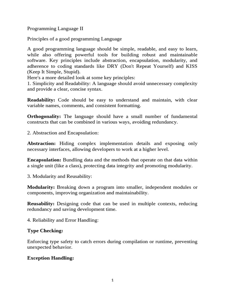1. Simplicity and Readability: A language should avoid unnecessary complexity
