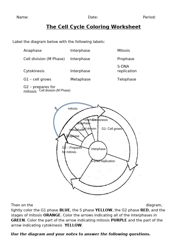 stages of mitosis ORANGE. Color the arrows indicating all of the interphases in