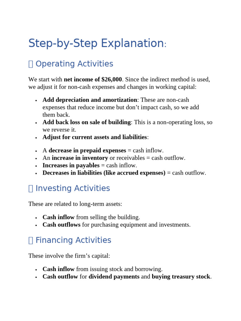 We start with net income of $26,000. Since the indirect method is used,