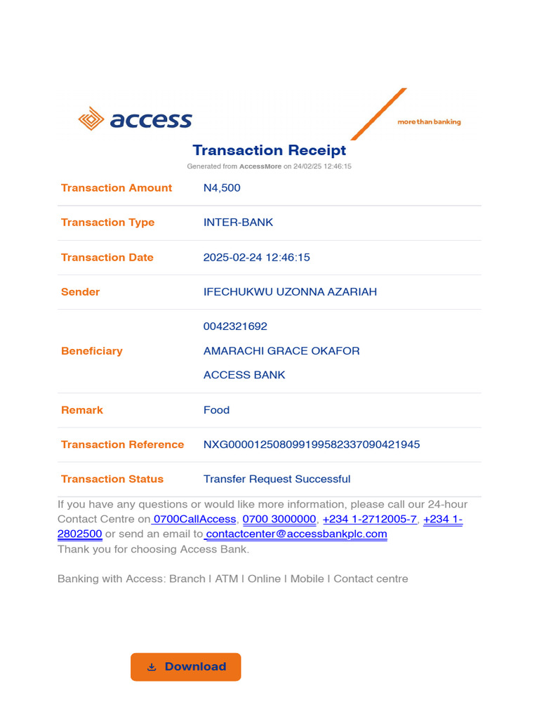 Thank you for choosing Access Bank.