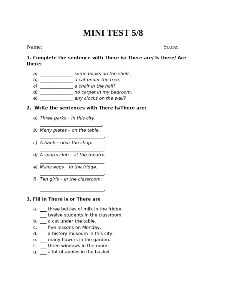 1. Complete the sentence with There is/ There are/ Is there/ Are