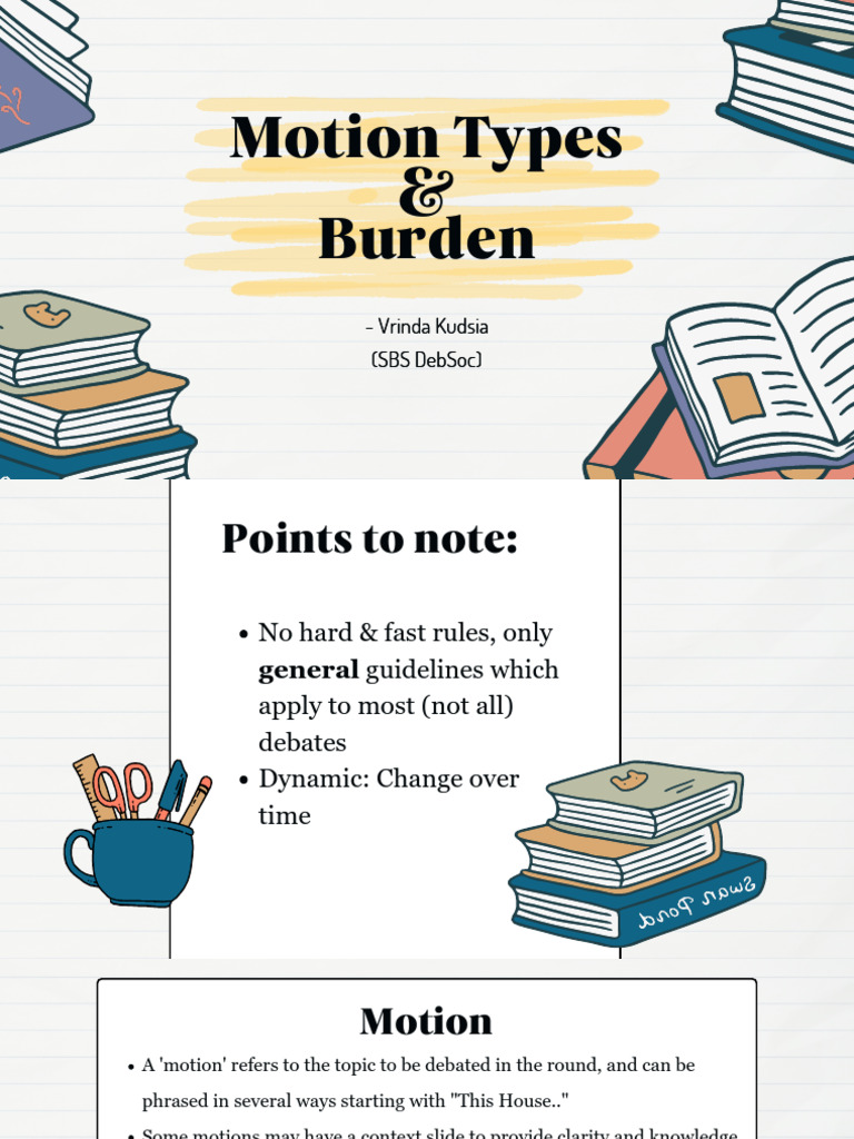 A 'motion' refers to the topic to be debated in the round, and can be