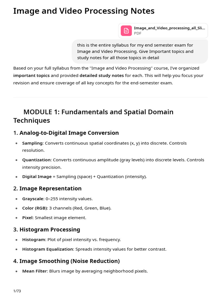Based on your full syllabus from the "Image and Video Processing" course, I’ve organized