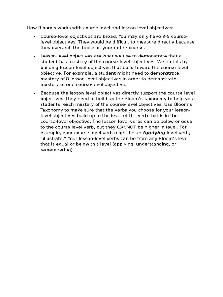 “illustrate.” Your lesson-level verbs can be from any Bloom’s level