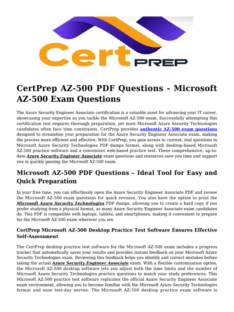 CertPrep AZ-500 PDF Questions - Microsoft
