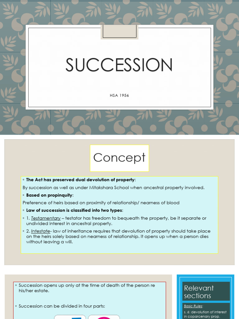 ◦ Law of succession is classified into two types: