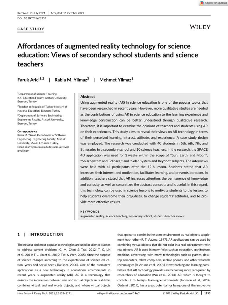 tion, augmented reality in education (PhD thesis subject), 3D vir- science teachers. Human Behavior and Emerging Technologies,
