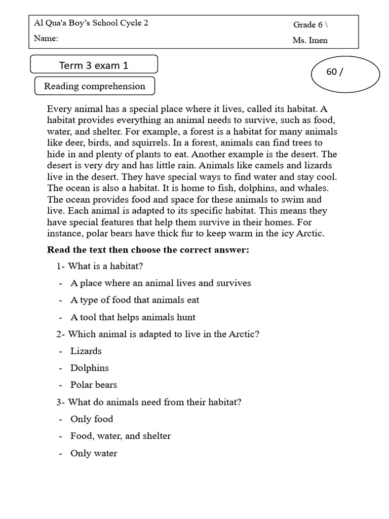 Name: …………………………………………………………………………………… Grade: 6/