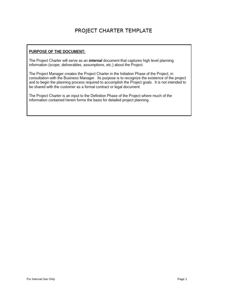 The Project Charter will serve as an internal document that captures high level planning