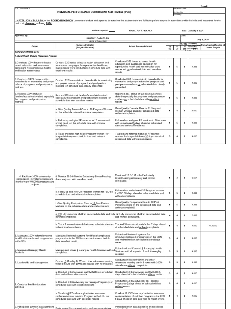 INDIVIDUAL PERFORMANCE COMMITMENT AND REVIEW (IPCR) Revision No: