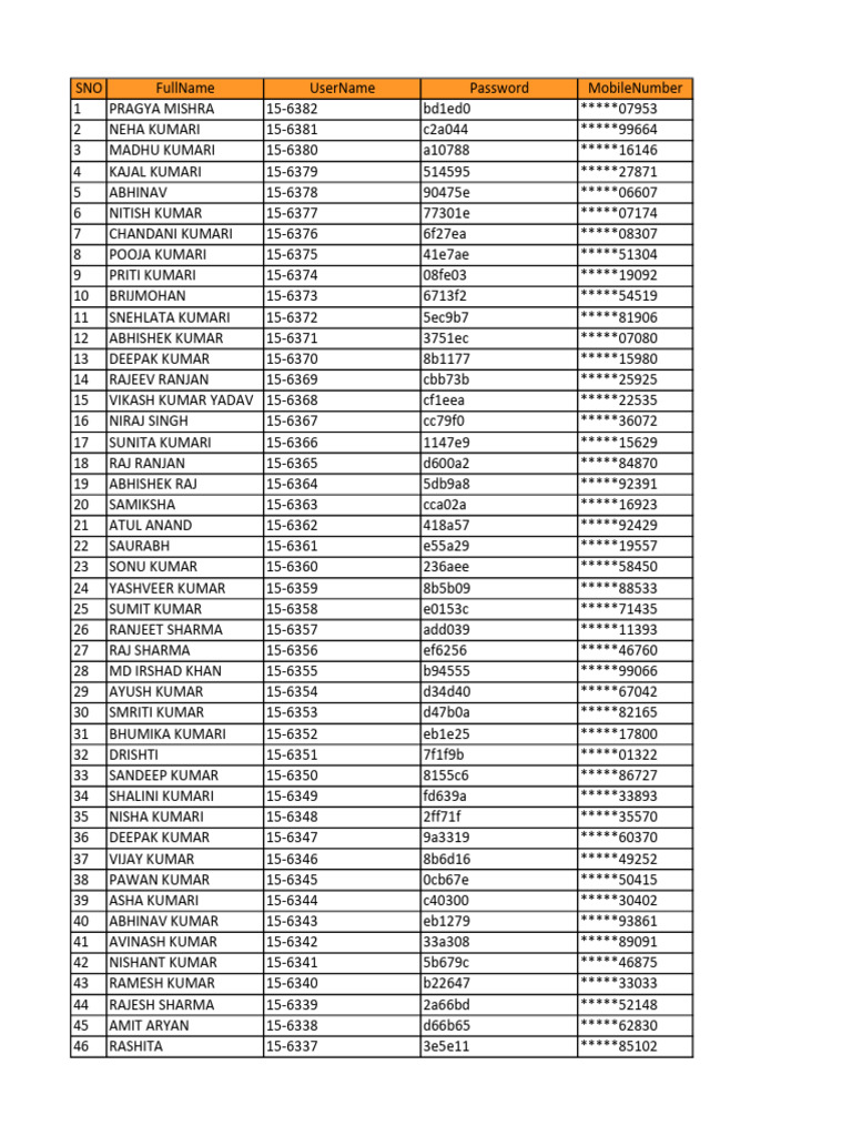 435 SATYAM KUMAR 15-1762 465167 *****89478