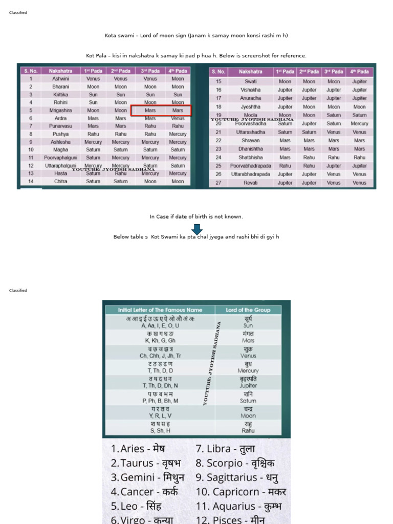 Below table s Kot Swami ka pta chal jyega and rashi bhi di gyi h