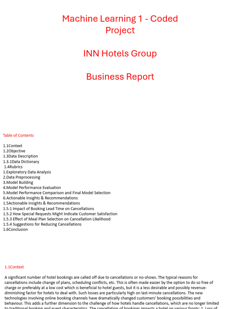 which booking is going to be cancelled in advance, and help in formulating profitable policies for cancellations and refunds.