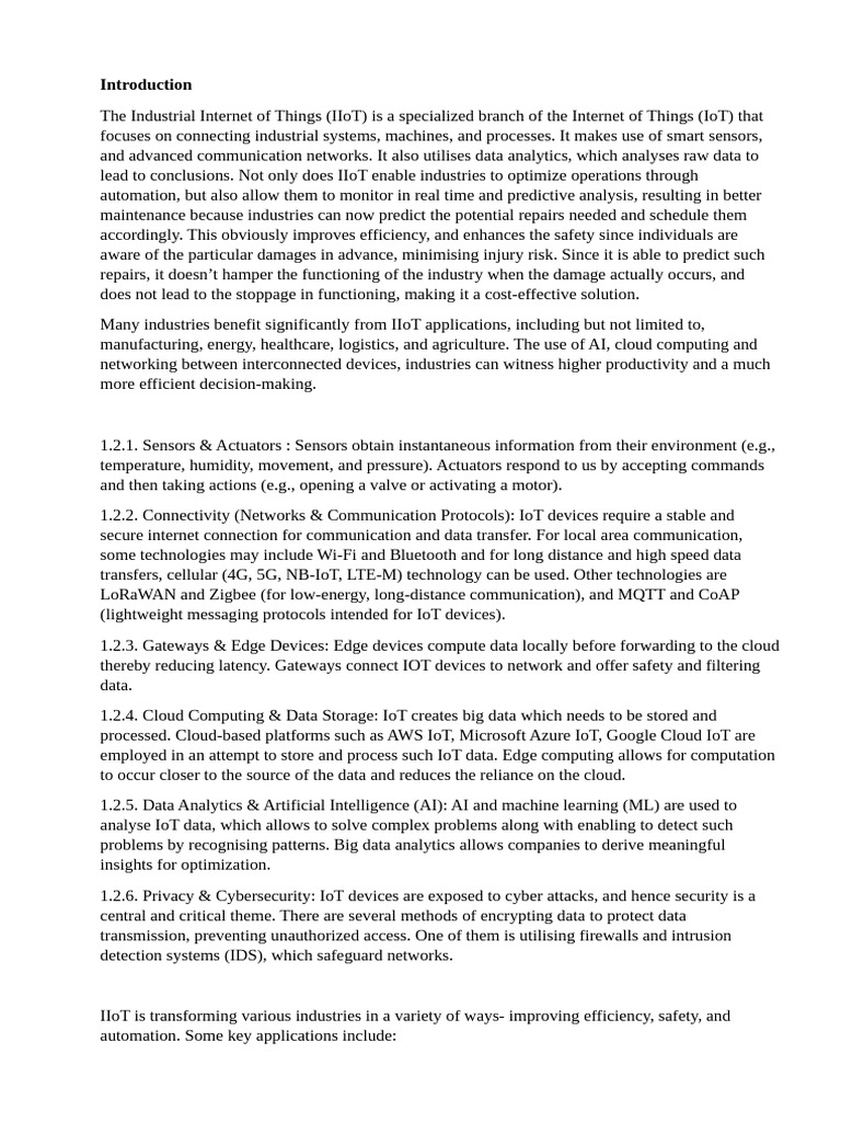 focuses on connecting industrial systems, machines, and processes. It makes use of smart sensors,