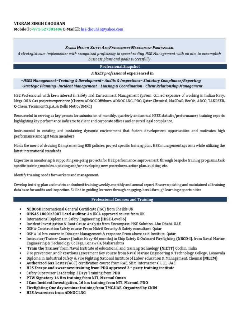 A strategist cum implementer with recognized proficiency in spearheading HSE Management with an aim to accomplish
