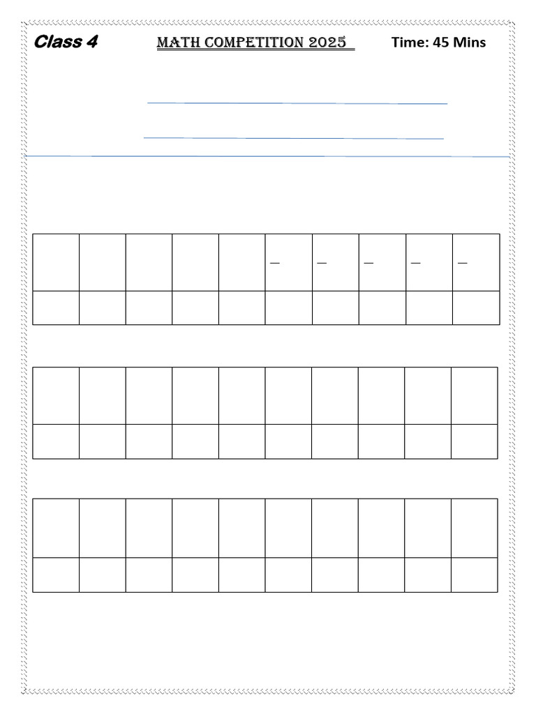 Class 4 MATH COMPETITION 2025 Time: 45 Mins