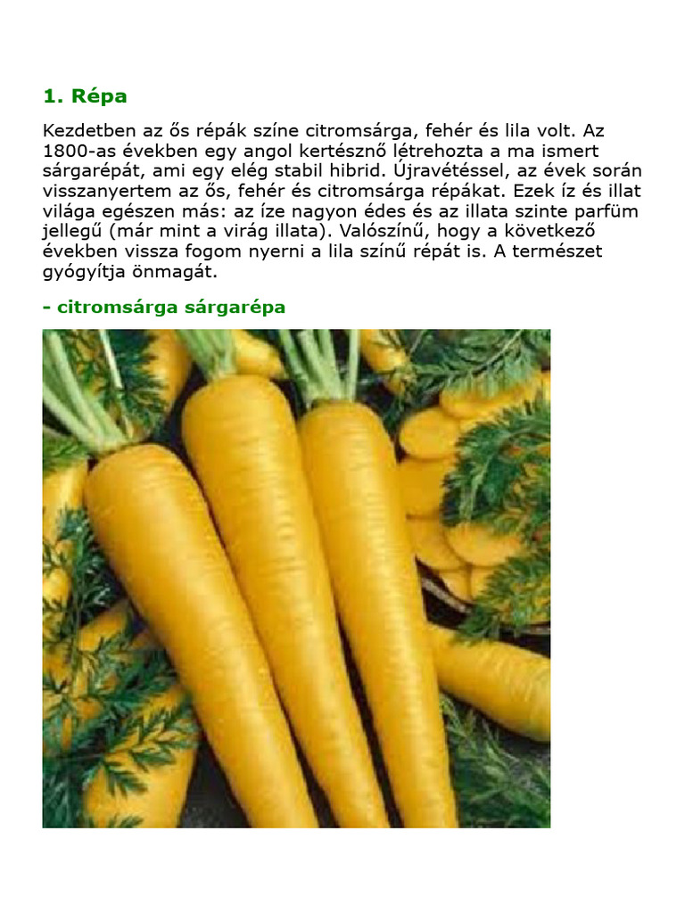 sárgarépát, ami egy elég stabil hibrid. Újravétéssel, az évek során
