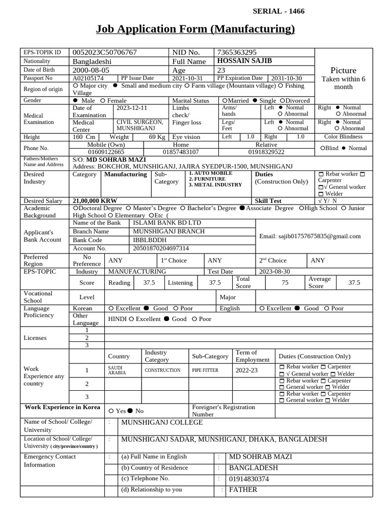 Nationality Bangladeshi Full Name HOSSAIN SAJIB