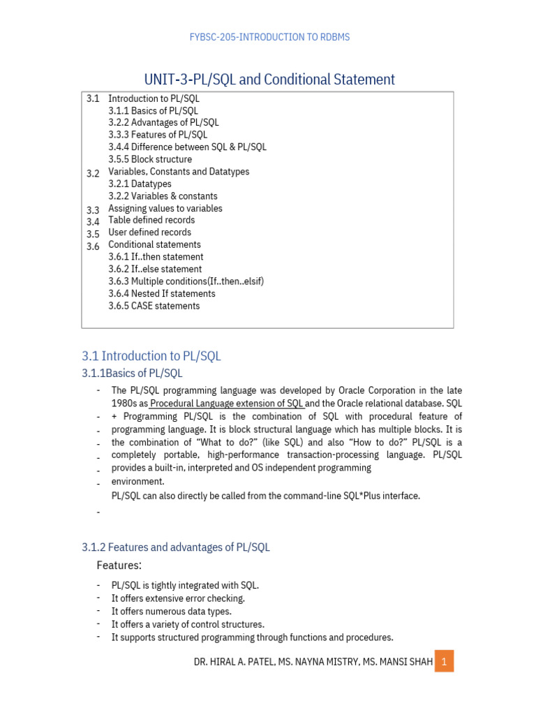 3 UNIT-3-PL/SQL and Conditional Statement