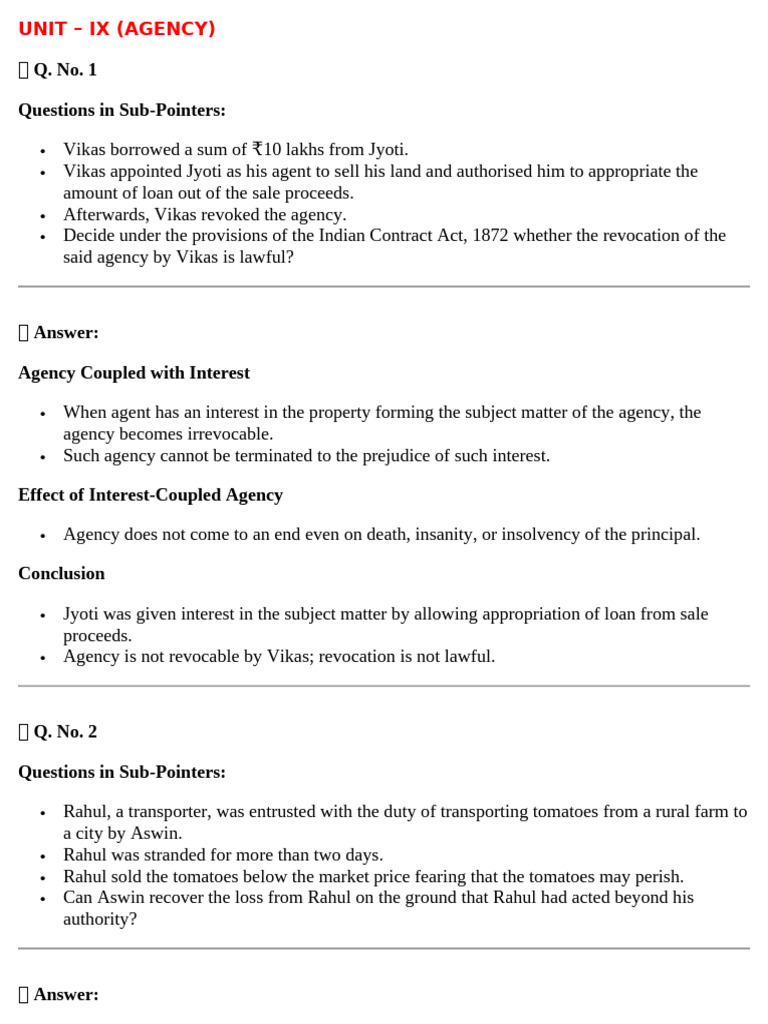 1. Hari authorises Bharat, a merchant in Mumbai, to recover dues from Bankey & Co.