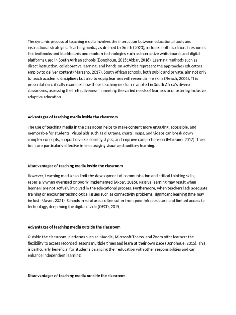 presentation critically examines how these teaching media are applied in South Africa’s diverse