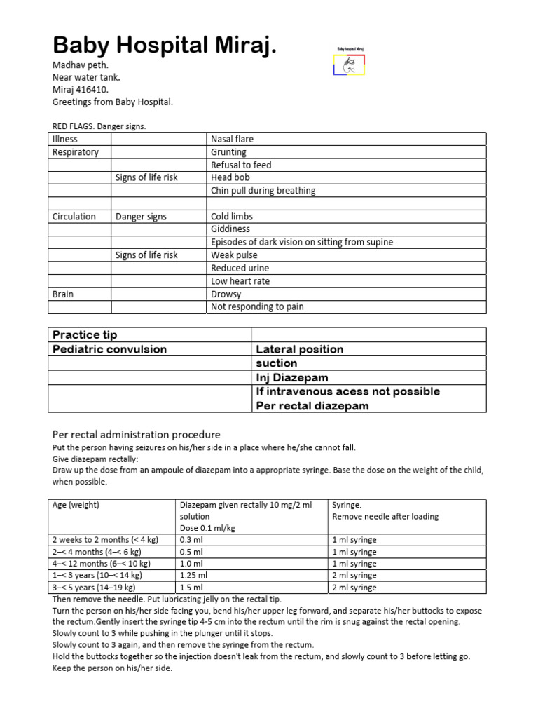 Age (weight) Diazepam given rectally 10 mg/2 ml Syringe.