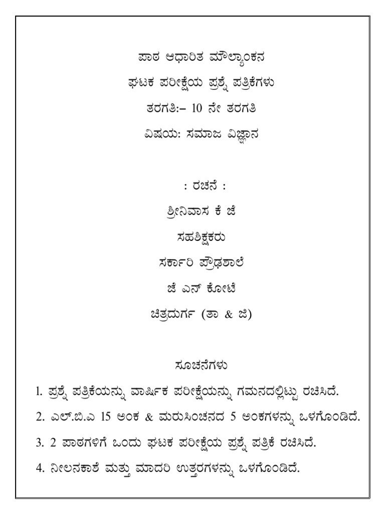 3. 2 ಪಾಠಗಳಿಗೆ ಒಾಂದು ಘಟಕ ಪರಿೀಕ್ಷೆಯ ಪರಶ್ೆೆ ಪತ್ರರಕೆ ರಚಿಸಿದೆ.
