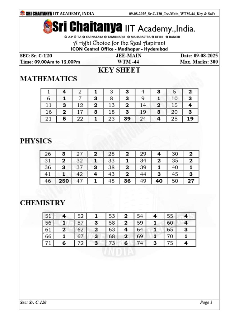 SRI CHAITANYA IIT ACADEMY, INDIA 09-08-2025_Sr.C-120_Jee-Main_WTM-44_Key & Sol's