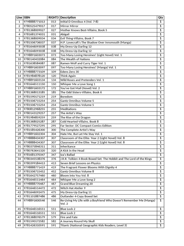 Line ISBN RIGHT3 Description Qty