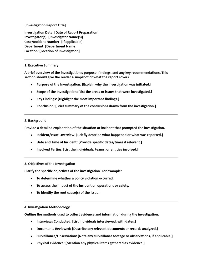 • Conclusion: [Brief summary of the conclusions drawn from the investigation.]