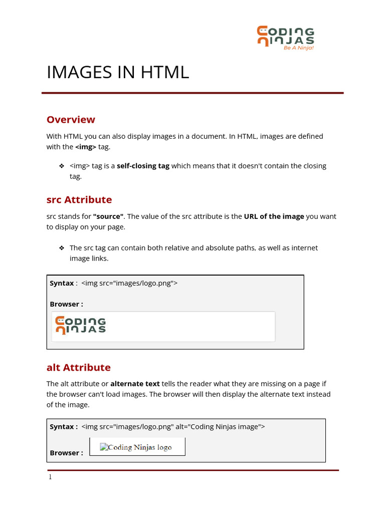 Syntax : <img src="images/logo.png" alt="Coding Ninjas image">