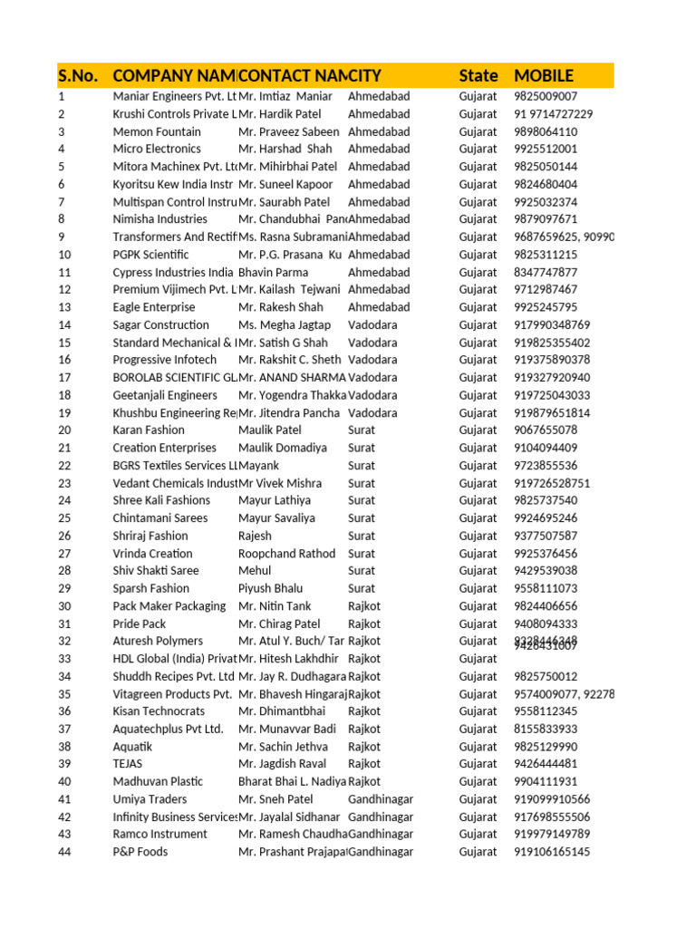 19 Khushbu Engineering RepMr. Jitendra Pancha Vadodara Gujarat 919879651814
