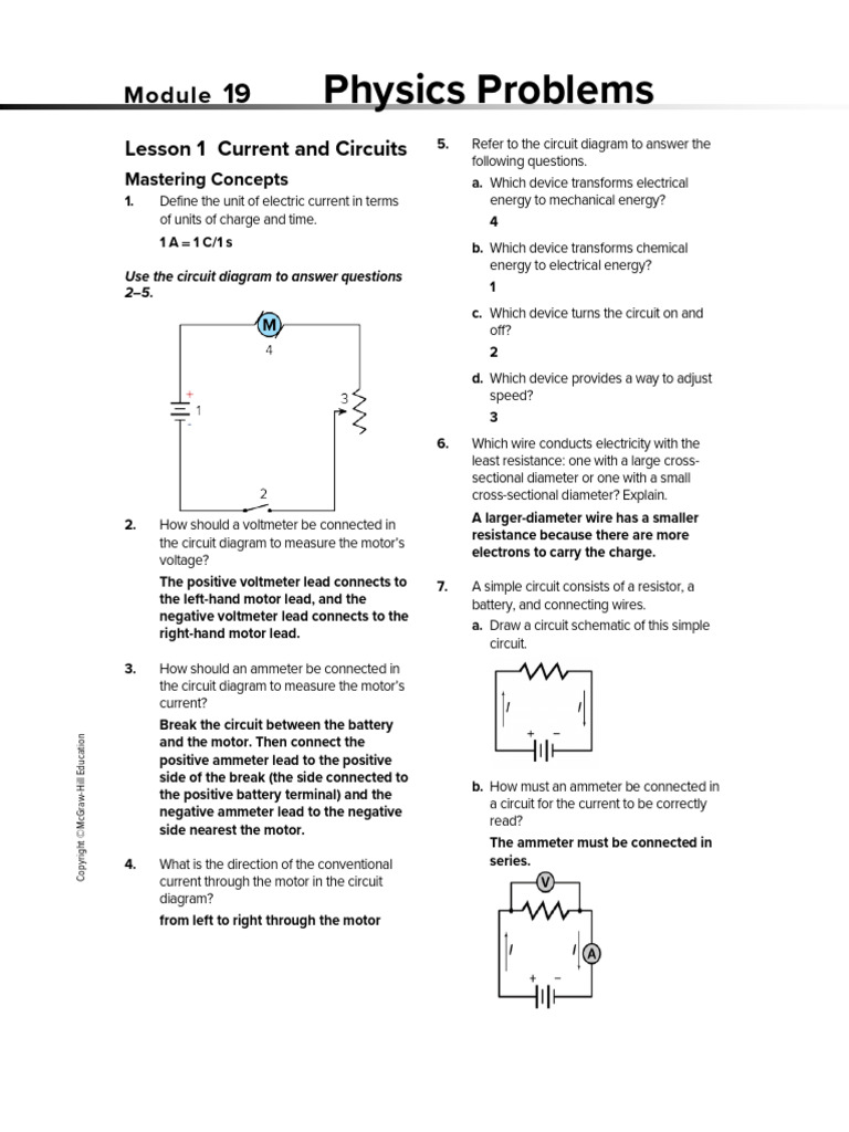 Lesson 1 Current and Circuits 5. Refer to the circuit diagram to answer the