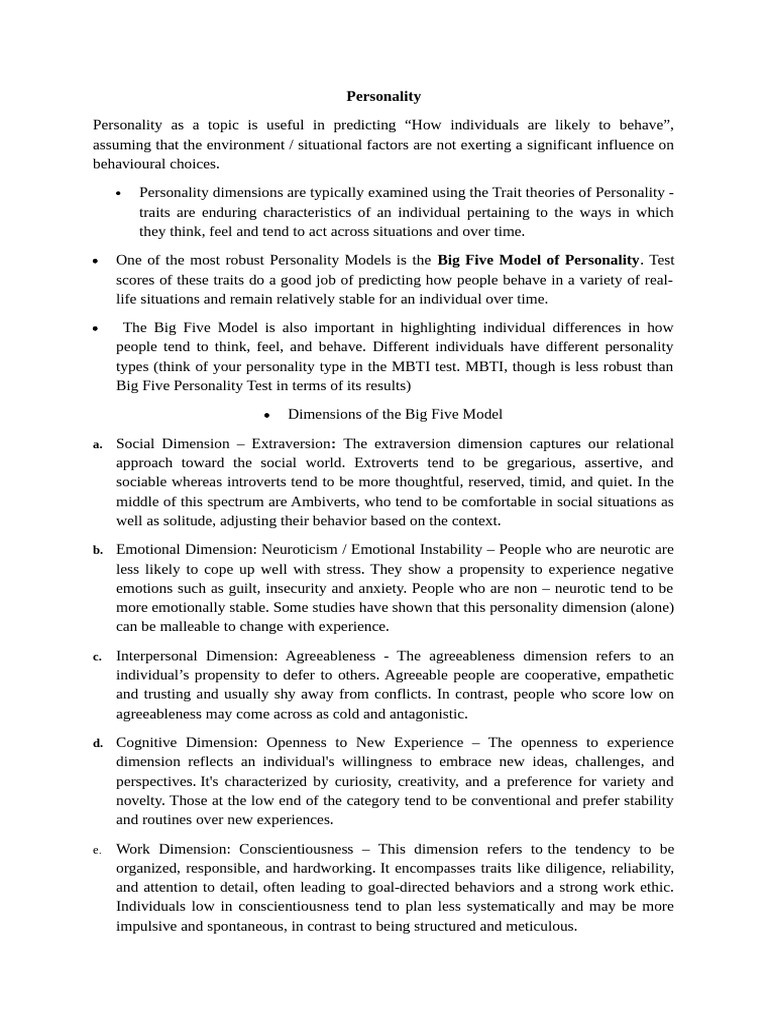 Personality as a topic is useful in predicting “How individuals are likely to behave”,