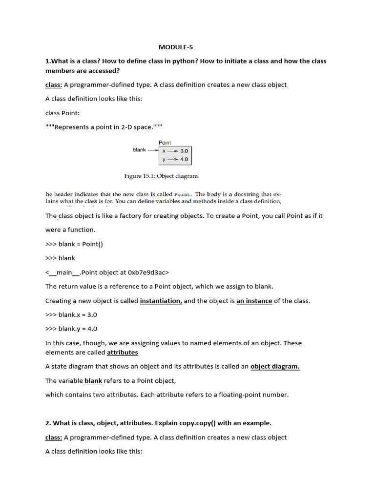 1.What is a class? How to define class in python? How to initiate a class and how the class