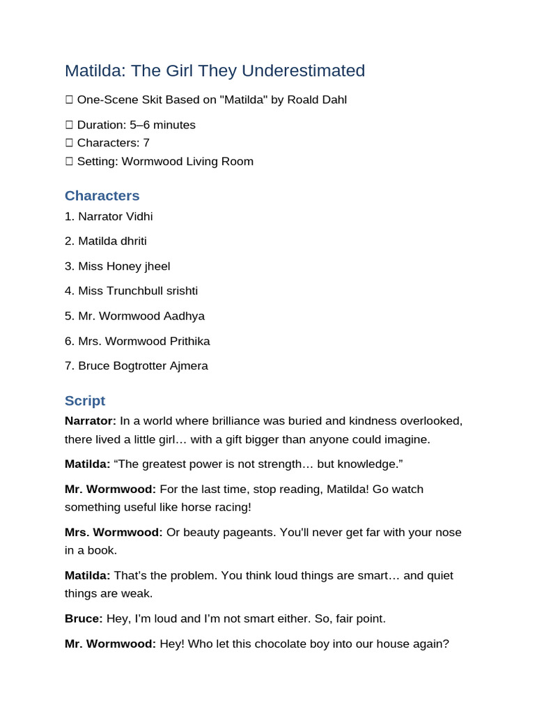 🎭 One-Scene Skit Based on "Matilda" by Roald Dahl