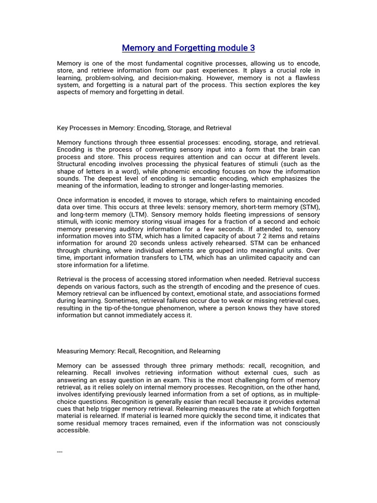 Key Processes in Memory: Encoding, Storage, and Retrieval