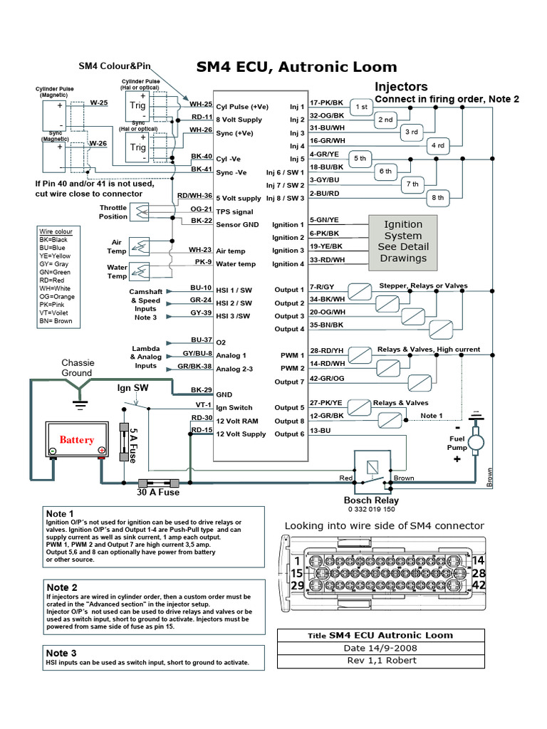 SM4 Colour&Pin SM4 ECU, Autronic Loom