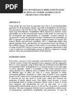 plan of cement. The utilization of PET containers waste due permeability, and abrasion resistance is discussed in this