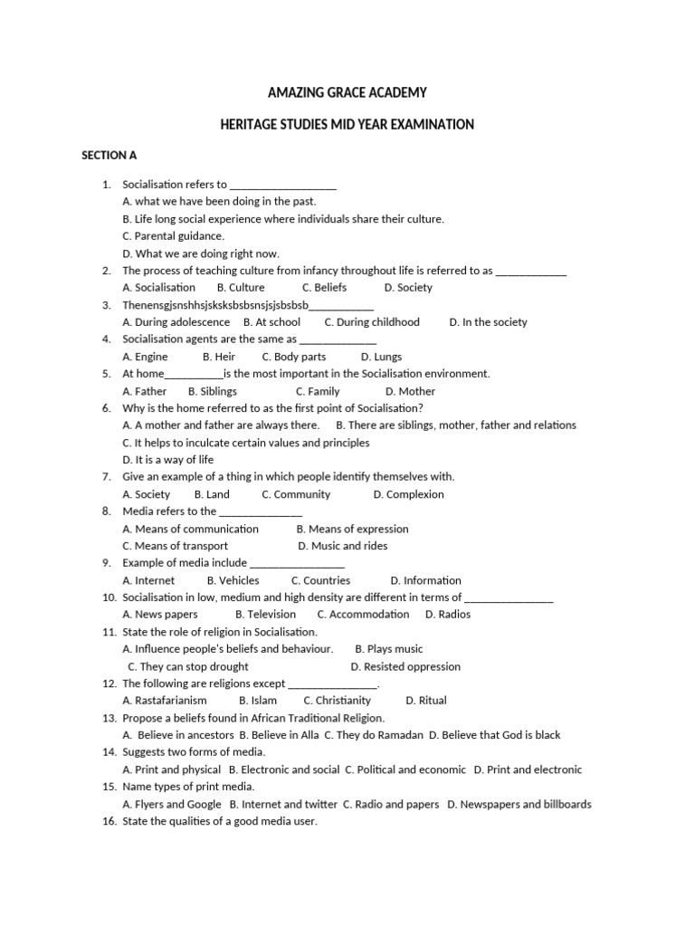 HERITAGE STUDIES MID YEAR EXAMINATION
